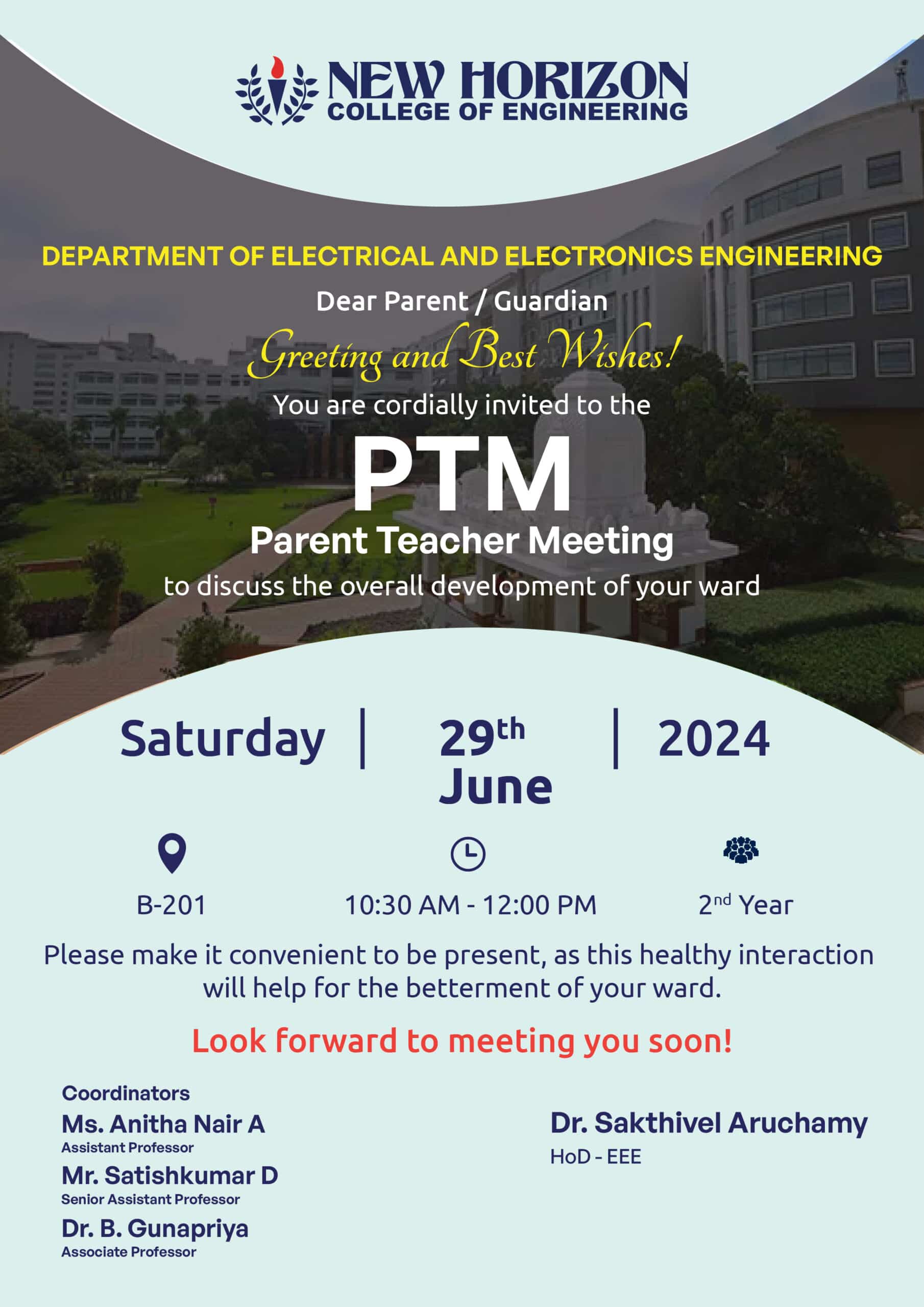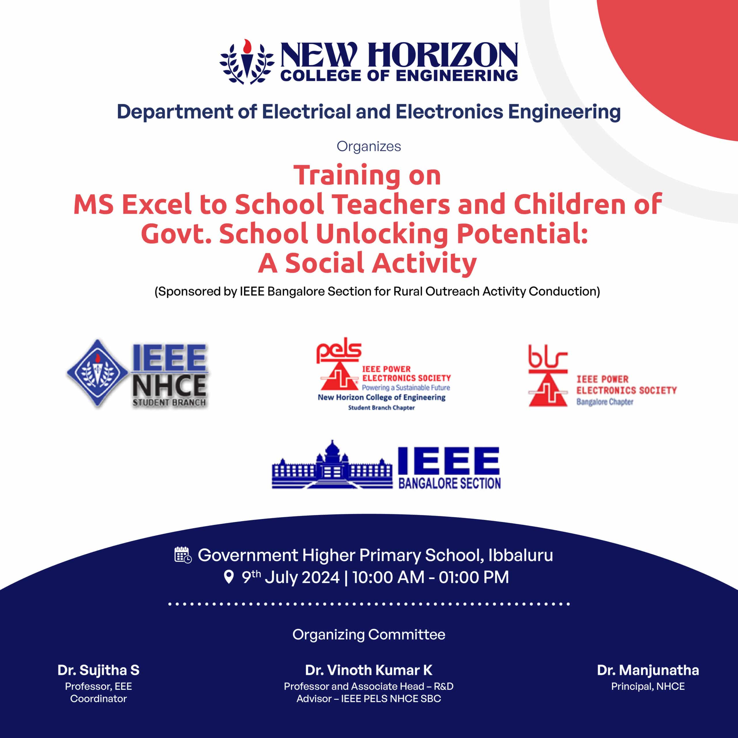 Department of Electrical and Electronics Engineering, is organizing a Three-Days online National Workshop Programme on “Research Challenges in Advanced Power Converters for Electrical Engineering Applications” during October 27 – 29, 2020 in association with IEEE NHCE Student Branch Chapter.