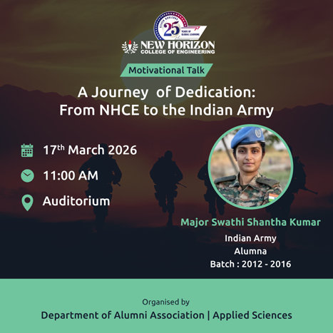 A Journey of Dedication: From NHCE to the Indian Army The Alumni Association and the Department of Applied Sciences organized an inspiring alumni talk by Major Swathi Shantha Kumar on 17 March 2026. She shared her journey from NHCE to becoming an officer in the Indian Army. The session highlighted her recent recognition with the […]