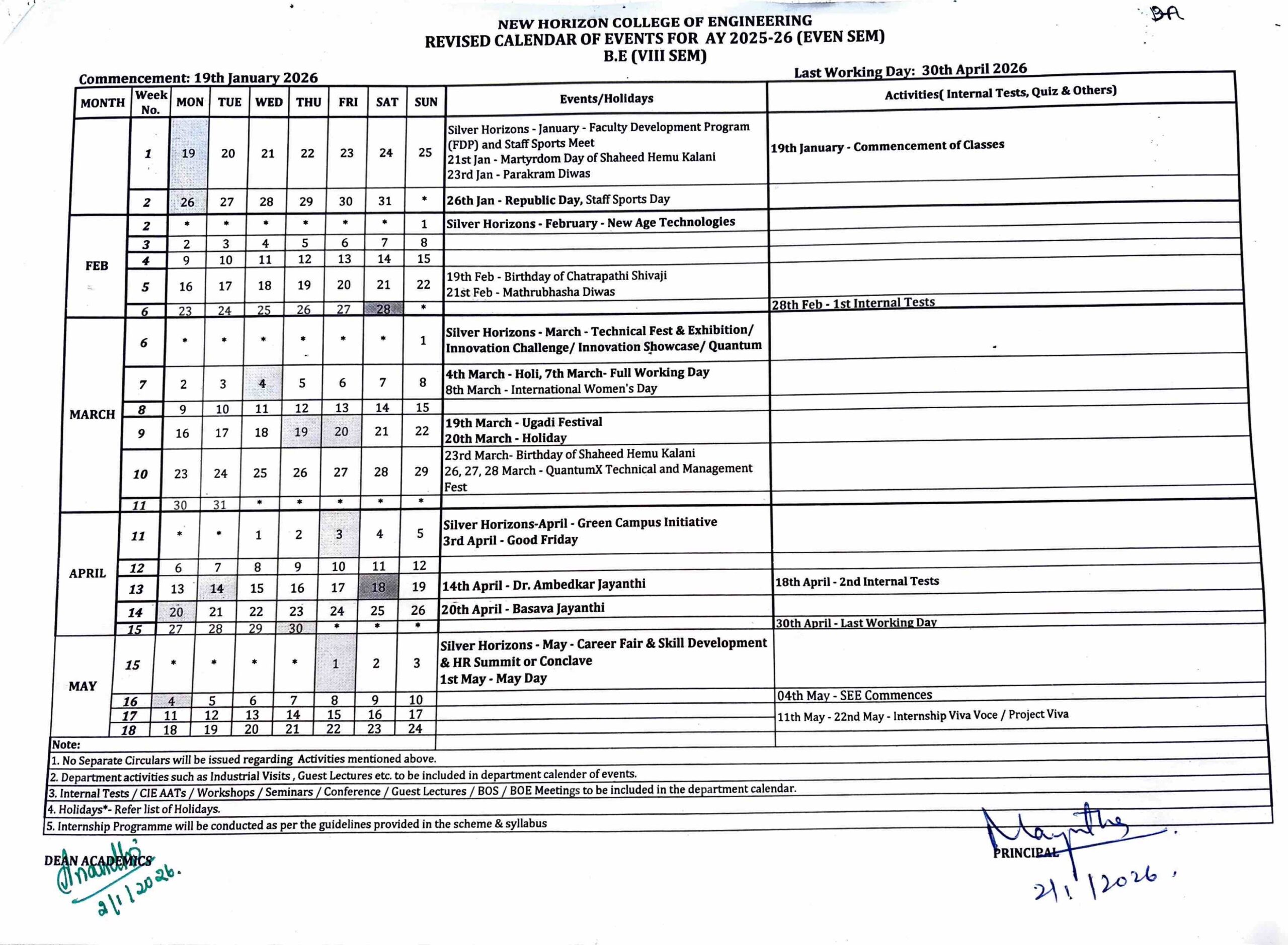 - Revised 8th sem Calendar of Events- LWD 25th May
