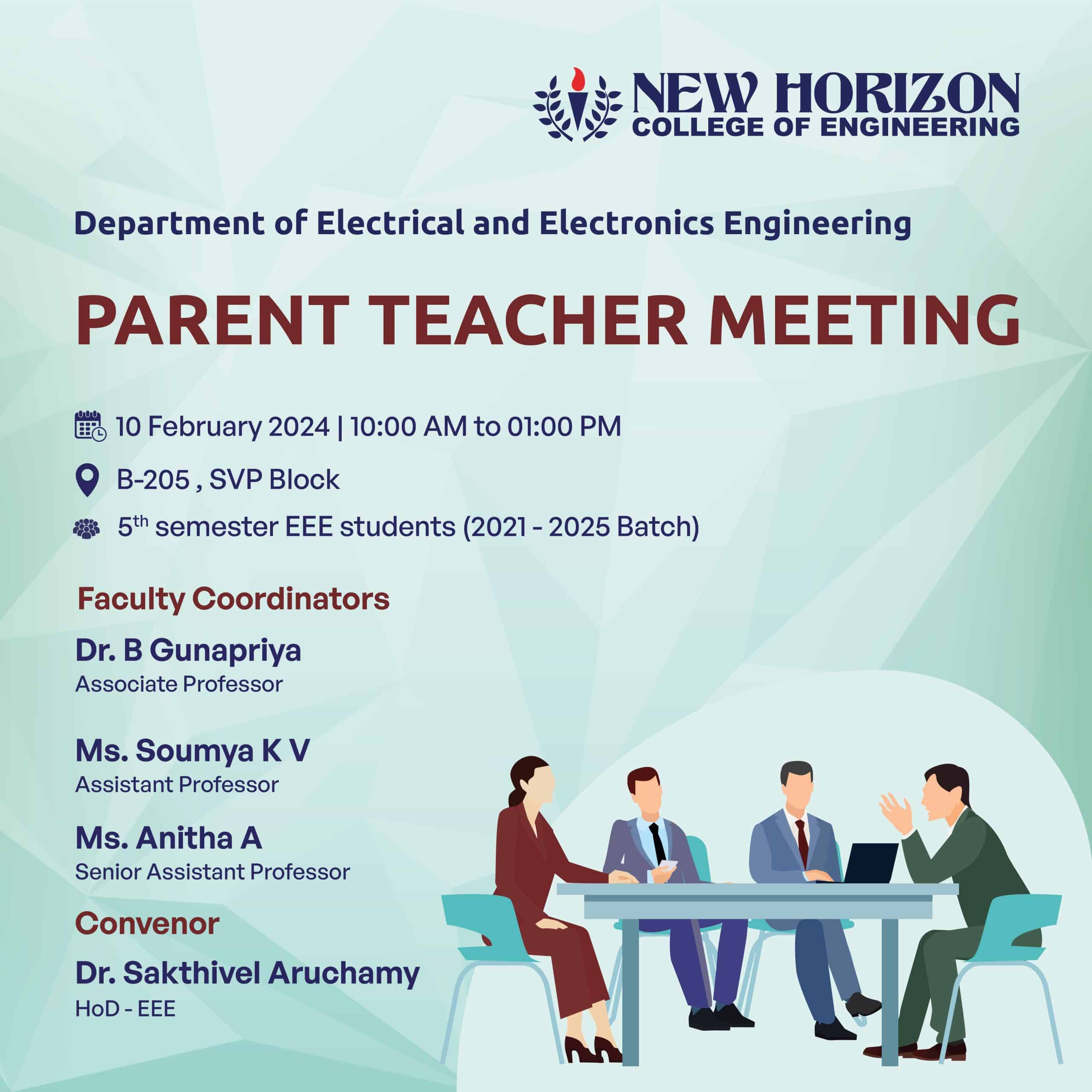 EVENTS Parent-teacher Meeting (PTM) EEE Start Time 10:00 AM February 10, 2024 Finish Time 01:00 PM February 10, 2024