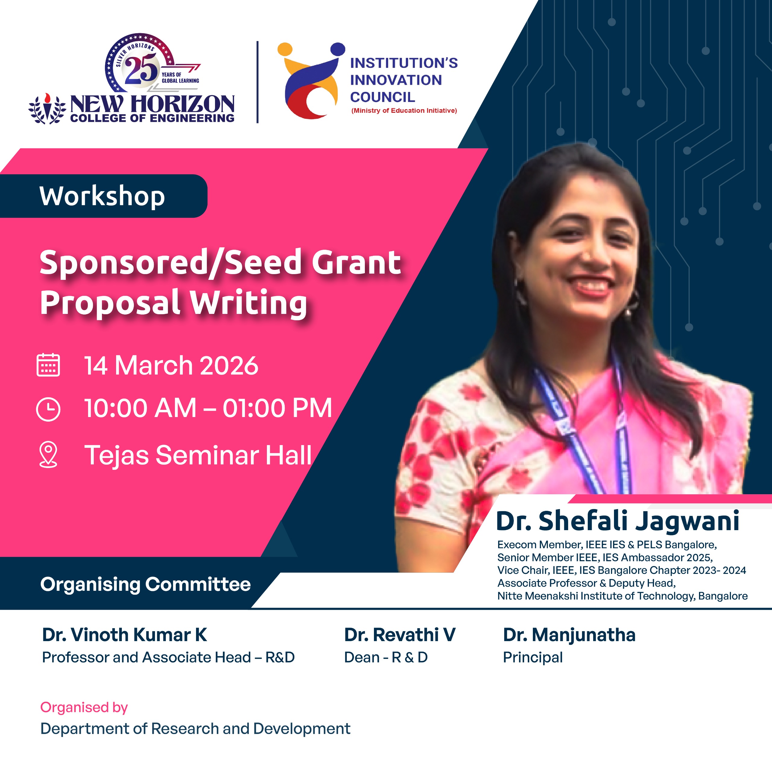 New Horizon College of Engineering in association with the Institution’s Innovation Council is organizing a Workshop on Sponsored / Seed Grant Proposal Writing to help faculty and researchers develop strong proposals for funded research projects.