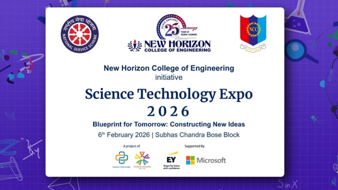The Science Technology Expo 2026, themed “Blueprint for Tomorrow: Constructing New Ideas,” was successfully organized by the NSS Unit Cell and NCC Unit of New Horizon College of Engineering (NHCE) in association with Yuvaka Sangha under the Campus 2 Community initiative on 6th February 2026.